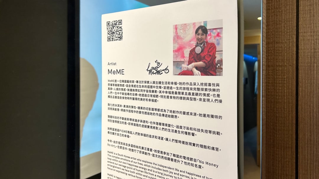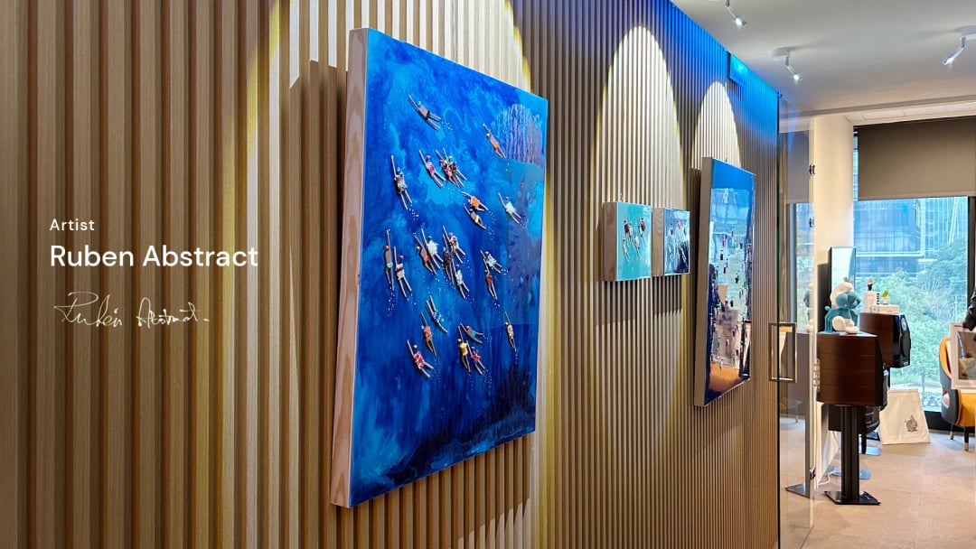 本次展覽匯聚三位不同國籍、不同風格的藝術家,展現多元的藝術風貌。韓國藝術家MeME以食物為主題,透過細膩的觀察和巧思,呈現出人們在品嚐美食時的幸福感。日本藝術家長坂真護以「可持續的資本主義」為理念,透過藝術創作關注電子廢料污染和貧民窟兒童教育等社會議題。西班牙藝術家Ruben Abstract則以孤獨的游泳者為主題,象徵在追求自我的道路上,需要勇氣和堅持。